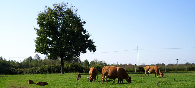 Il resto del territorio è destinato al pascolo recintato (circa 200 ettari), che servono all’allevamento semibrado di bovini, a prati coltivati e a boschi. L’allevamento allo stato semibrado di vacche da carne di razza Limousine costituito complessivamente di circa 170 capi, è una delle poche realtà con queste caratteristiche. La mandria, con la presenza di tori, pascola liberamente nei recinti dell’azienda (circa 200 ettari) anche nel periodo invernale. L’ingrasso dei vitelli viene effettuato in stalla in ampi box comunicanti con l’esterno. I vitelli sono alimentati in modo naturale dalla madre fino all’età dello svezzamento. Le femmine selezionate come future fattrici sono inserite all’interno della mandria, mentre i maschi seguono un’alimentazione differenziata fino al raggiungimento del peso ideale per la macellazione. La mandria è alimentata con prodotti derivanti dalle colture aziendali (fieno, farina di mais, insilato).