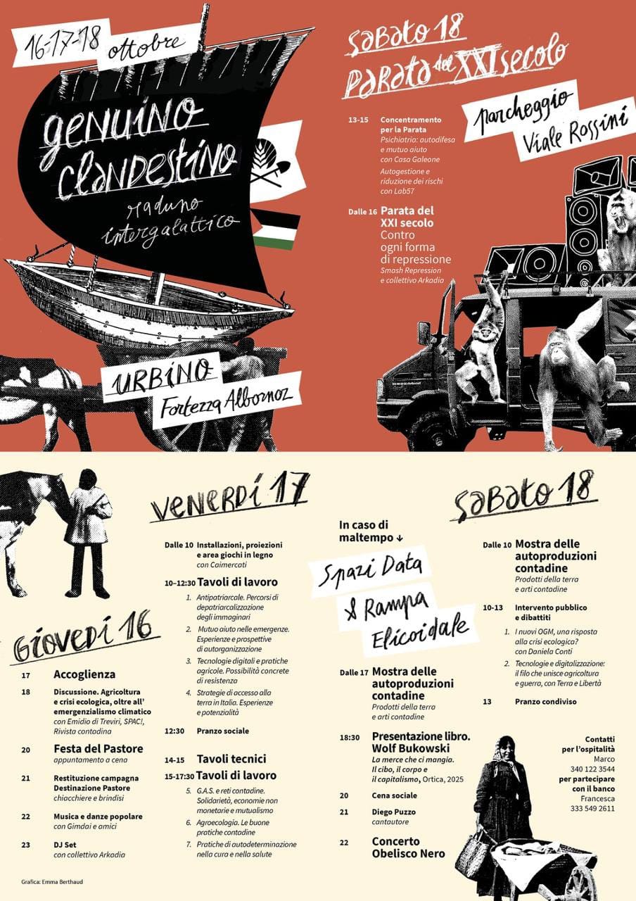 Appuntamento a Urbino, al Parco della fortezza Albornoz, il 16, 17 e 18 ottobre per l’incontro autunnale di Genuino Clandestino. Un’occasione da non perdere per scoprire e gustare prodotti agricoli genuini direttamente dai produttori.
