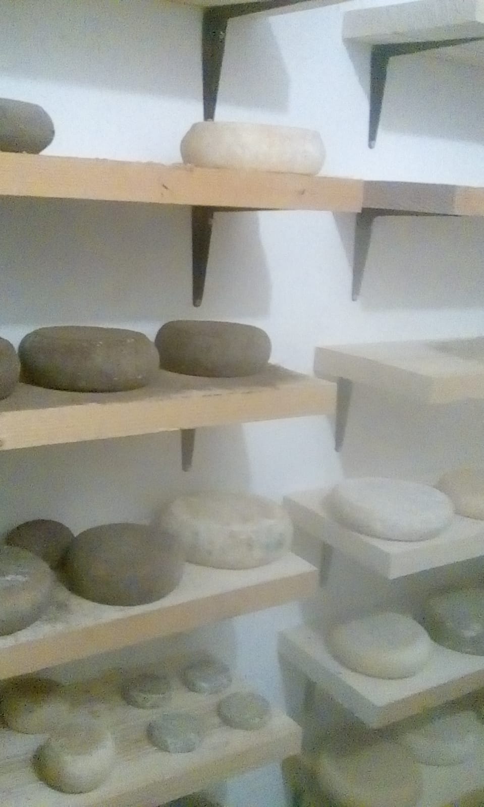 In gruppi di ¾ persone, abbiamo visitato il piccolo laboratorio di trasformazione, seguito da una cantina dove i formaggi stagionano ad una temperatura costante di 15°, in ambiente umido.