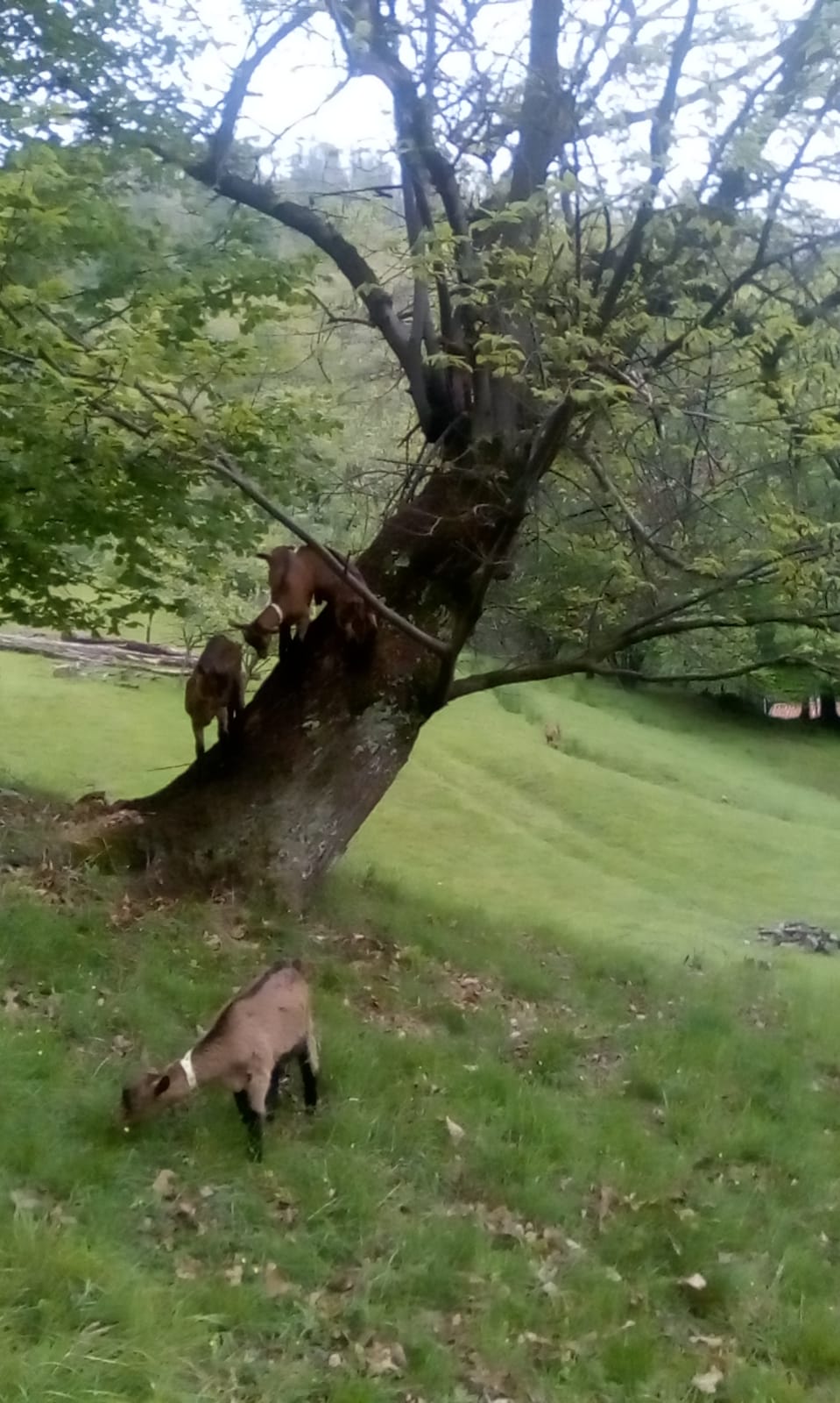 Le capre pascolano liberamente nei boschi che circondano l’abitazione (alle 16:30, sono uscite dalla stalla, per rientrare verso le 19:00), le pecore mangiano l’erba scartata dalle capre (che preferiscono gli arbusti), contribuendo così, a tenere puliti i campi. Mentre i maiali mangiano, oltre al resto, anche il siero di scolo dei formaggi; siero che Mario avrebbe dovuto smaltire diversamente e con aggiunta di costi.
